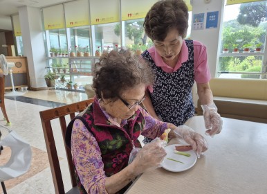 오늘은 요리프로그램으로 유부초밥 만들기를 진행하였습니다.개인 접시에 밥과 유부를 제공하여 어르신들께서 직접 만들어 드시는 ..