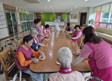 완성된 사과푸딩은 너무 탱글한 식감이 아니라 치아가 좋지않으신 어르신들께 안성맞춤이었고 은은한 단맛이 일품이었습니다.